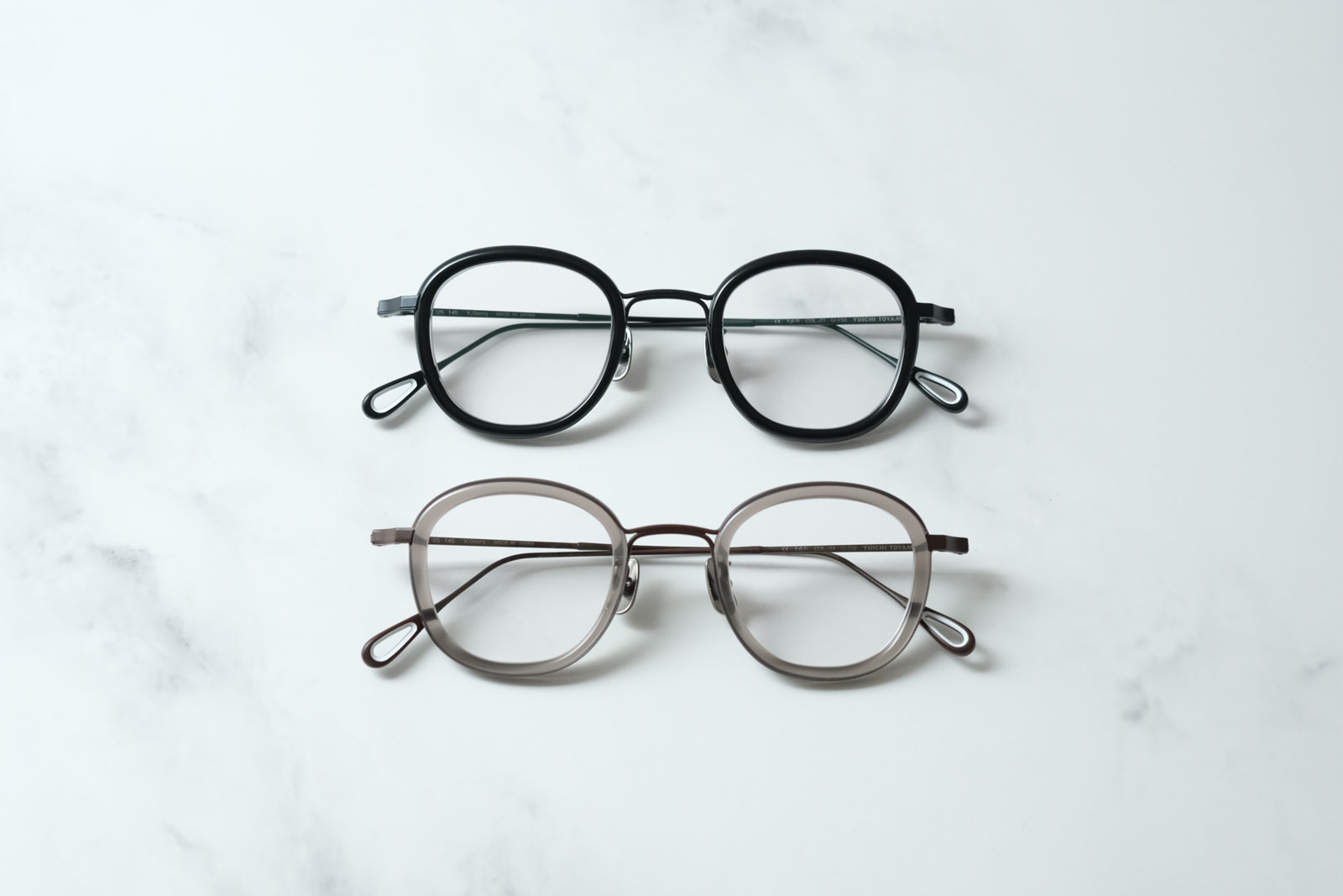 2023AWコレクション。1750年代に開発されたベンジャミングラスのデザインを、ユウイチトヤマの代表作・ダブルダッチ構造に落とし込んだベンジャミンシリーズ。柔和な雰囲気が漂うレクタングルシェイプです。