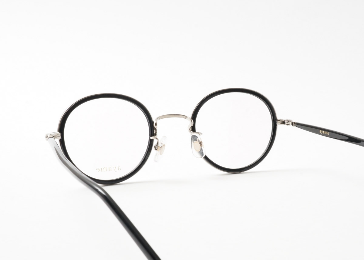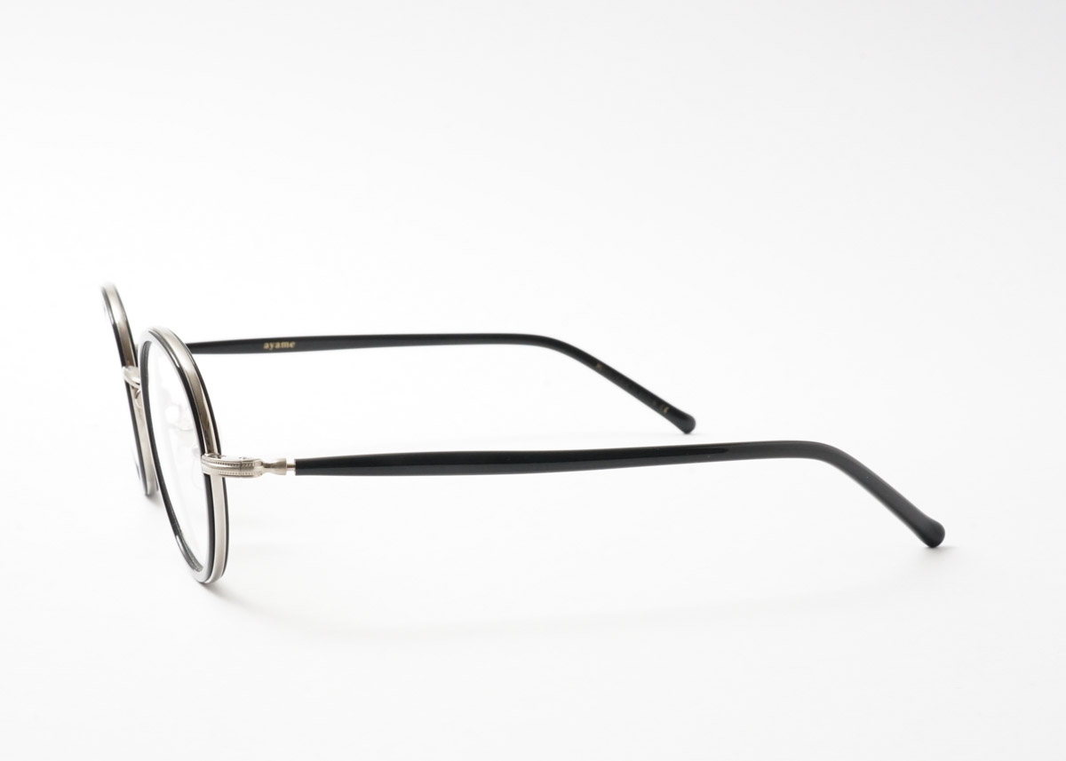 ayame初期から続く定番モデル。メタルフレームに「ワッパ」と呼ばれるインナーリムをセットすることで、セルフレームのようなボリューム感を楽しめる一本。ボストンとラウンドの中間のような、絶妙な玉型が魅力。腐食に強いチタンを採用し、ストレスフリーな掛け心地です。