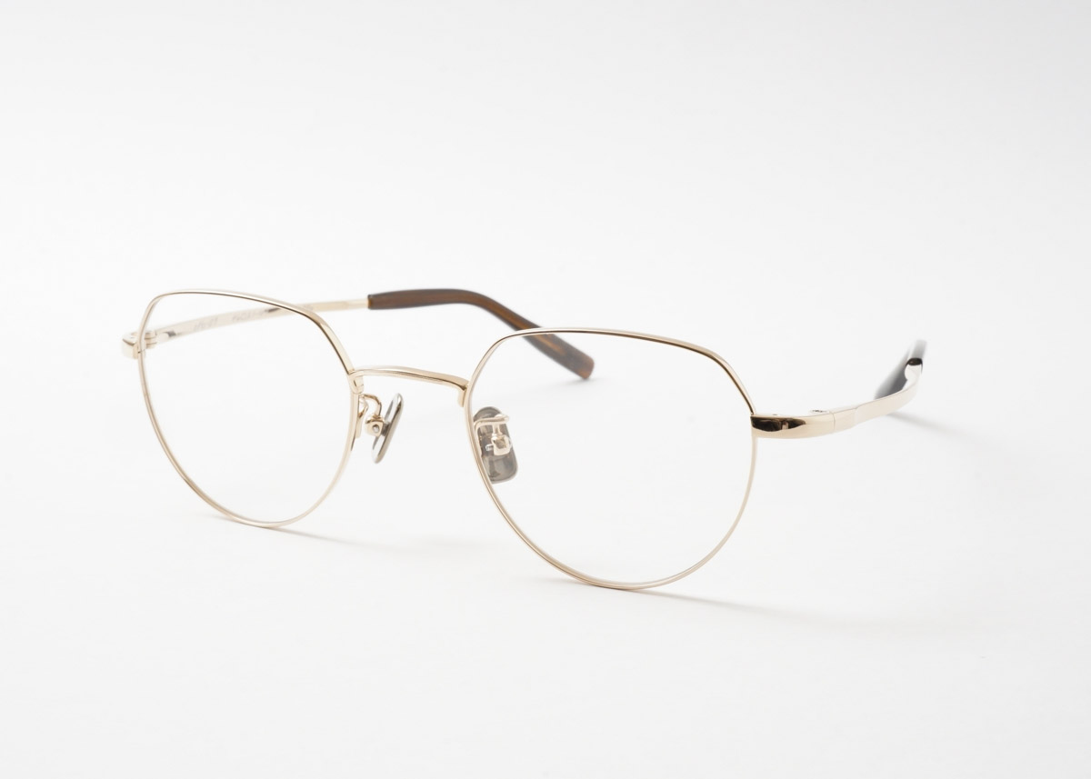 水平のブローラインがスッキリとした印象を与えるクラウンパント。男女問わず掛けられる標準的なサイズ感です。cfbシリーズ共通の「ボウテンプル」を採用。こめかみに対してはソフトな感触でありつつ、耳にはしっかり掛かる構造になっております。