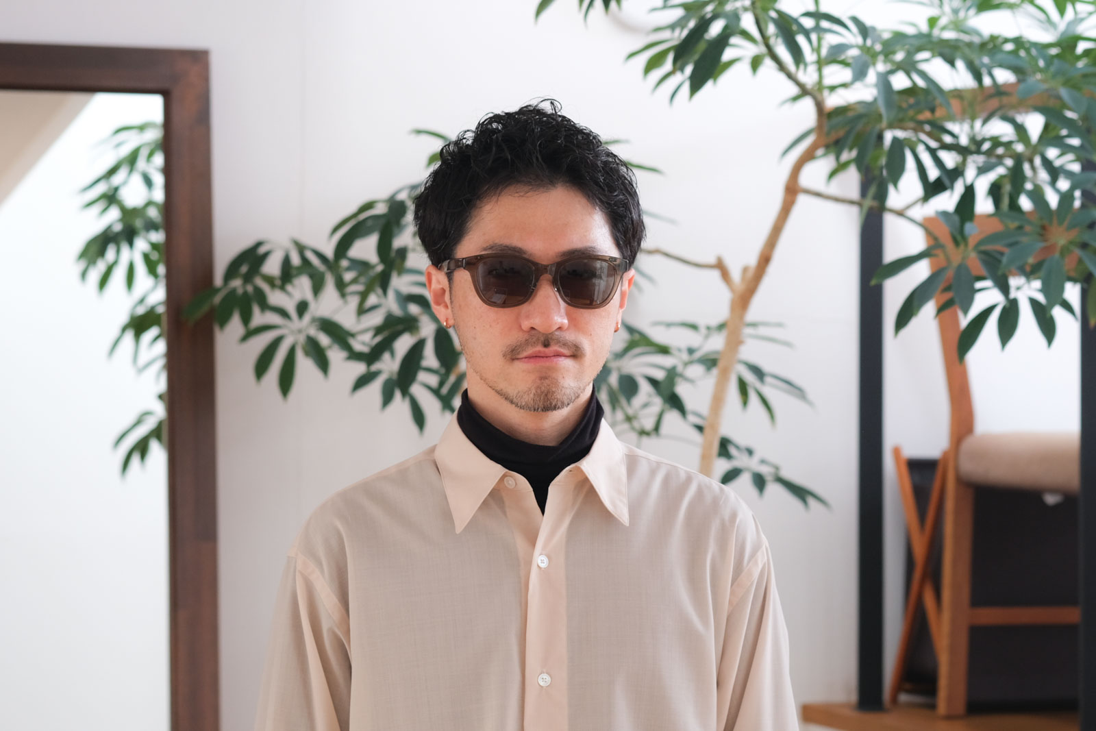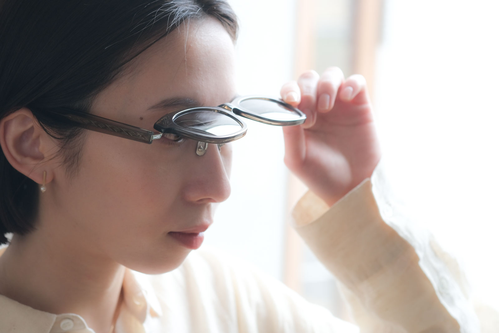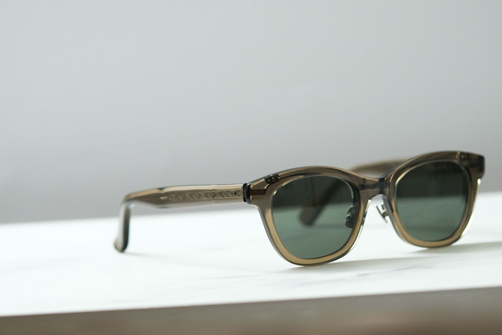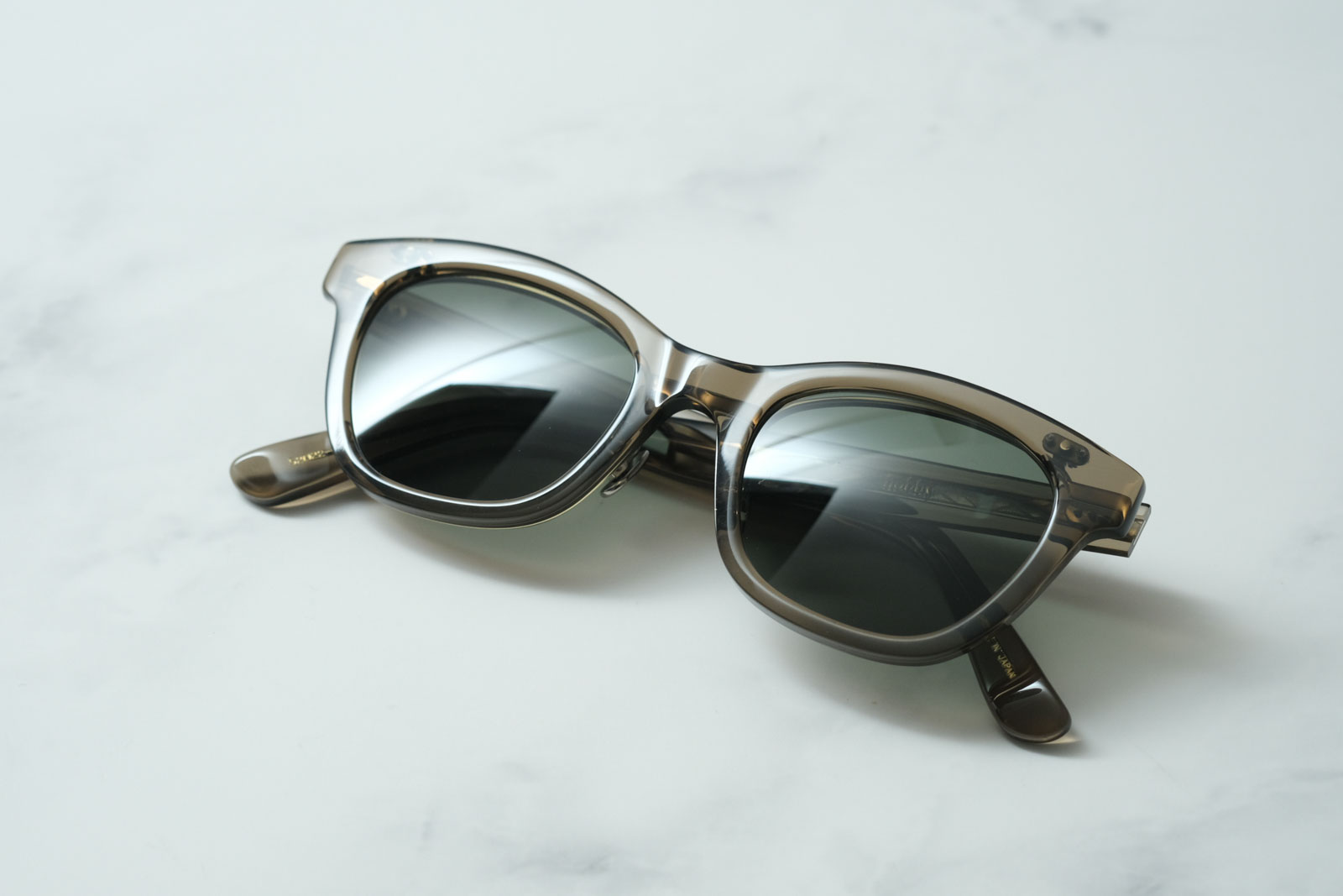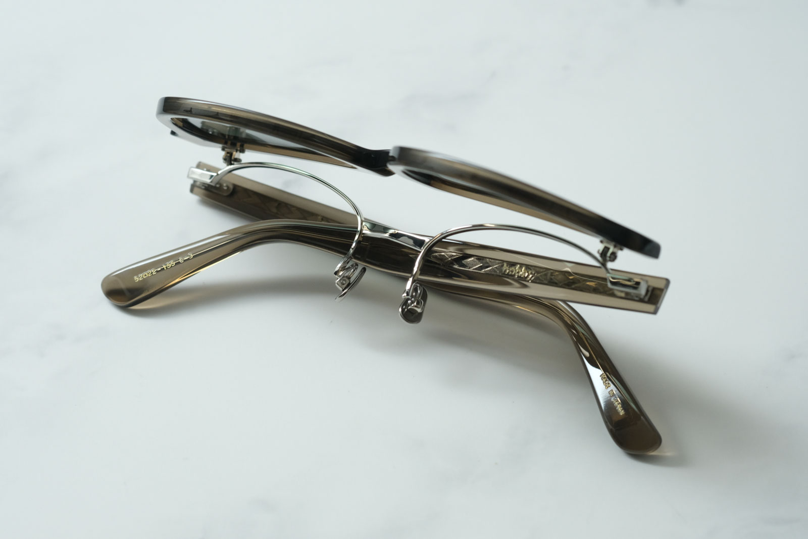 跳ね上げタイプのサングラス。度を入れて眼鏡としてお使いいただくことも可能です。