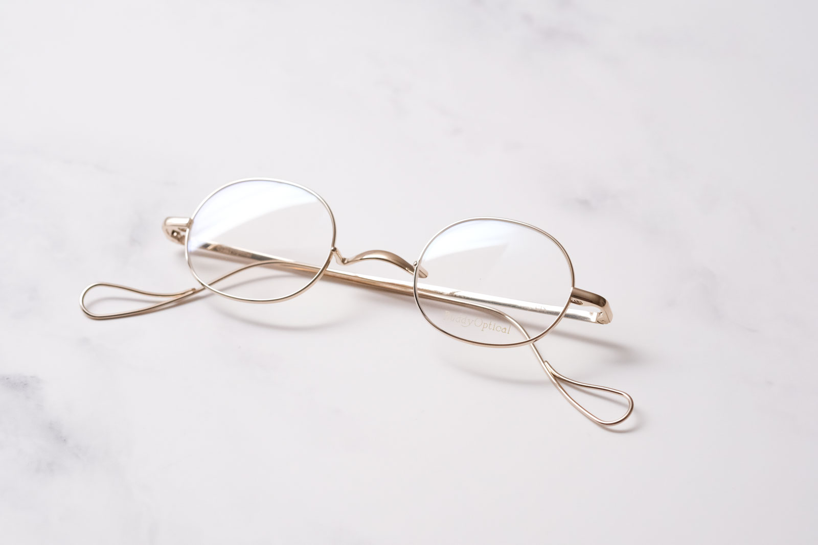 一山(イチヤマ)と呼ばれるクラシカルなブリッジが特徴のシンプルなメタルフレーム。コロンとしたかわいらしいオーバルシェイプが柔らかな印象を演出してくれる、バディオプティカルの定番アイテムです。