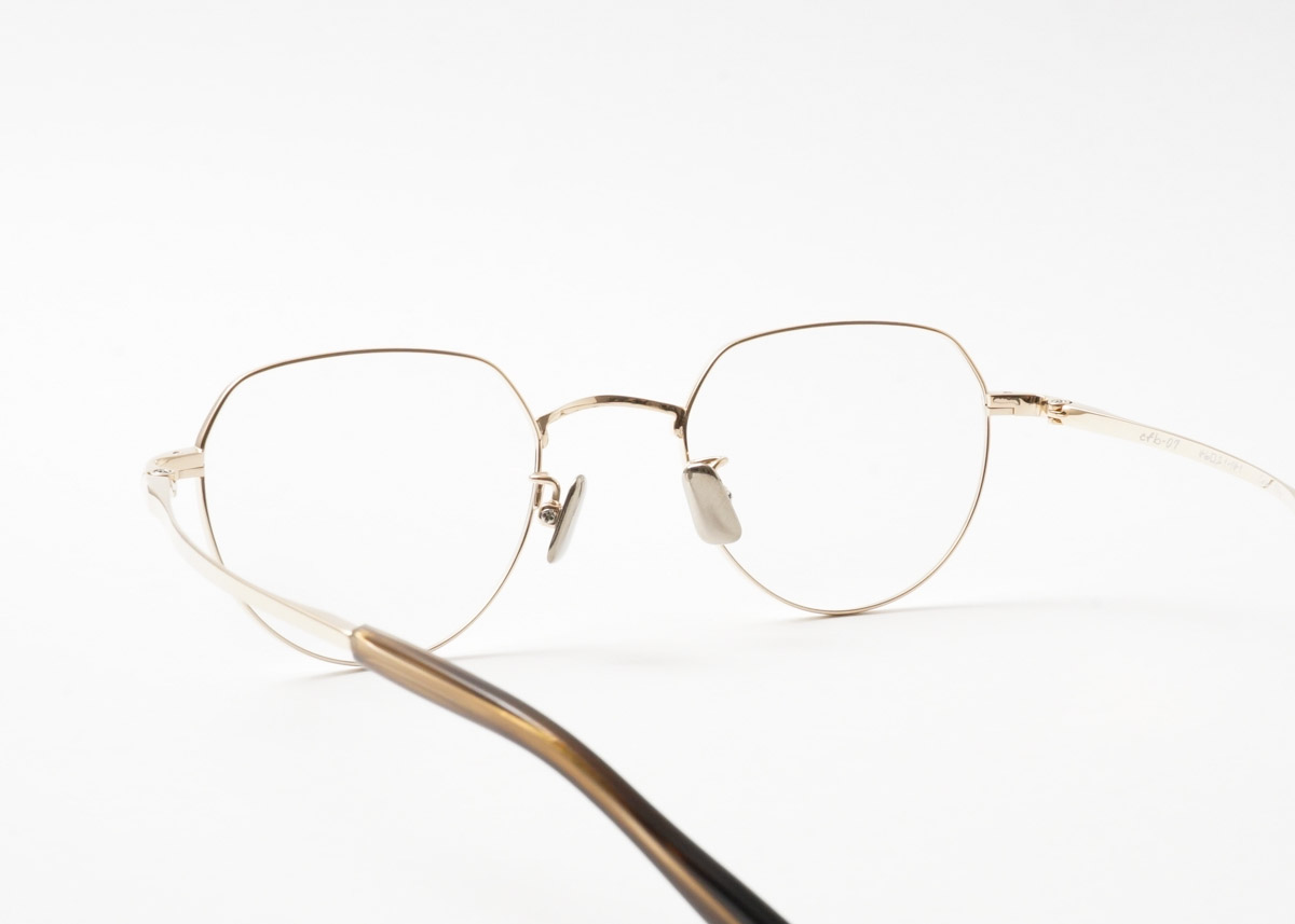 水平のブローラインがスッキリとした印象を与えるクラウンパント。男女問わず掛けられる標準的なサイズ感です。cfbシリーズ共通の「ボウテンプル」を採用。こめかみに対してはソフトな感触でありつつ、耳にはしっかり掛かる構造になっております。