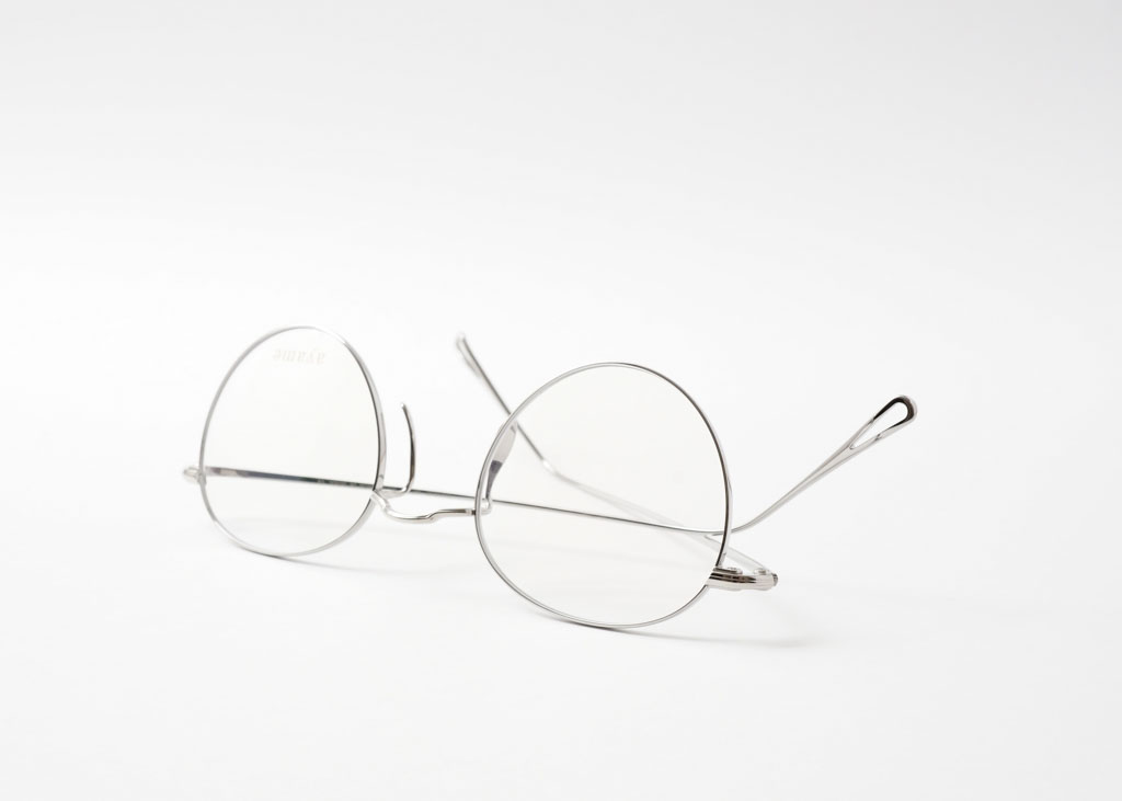 MANRAYは、そのノーズパーツを使用した記念すべき第一作目。大きすぎず小さすぎずな考え抜かれたサイズ感のシンプルなパント(丸)シェイプ。ボディはもちろん、モダンやパッドに至るまですべてチタンで統一し、さらに全体の線も極限まで細くすることで、この上ないミニマルで洗練された、完璧な一本に仕上がっています。敢えて彫金などの細工は加えず、ブリッジとテンプルに段落ち加工を施し、メタルの陰影を際立たせています。