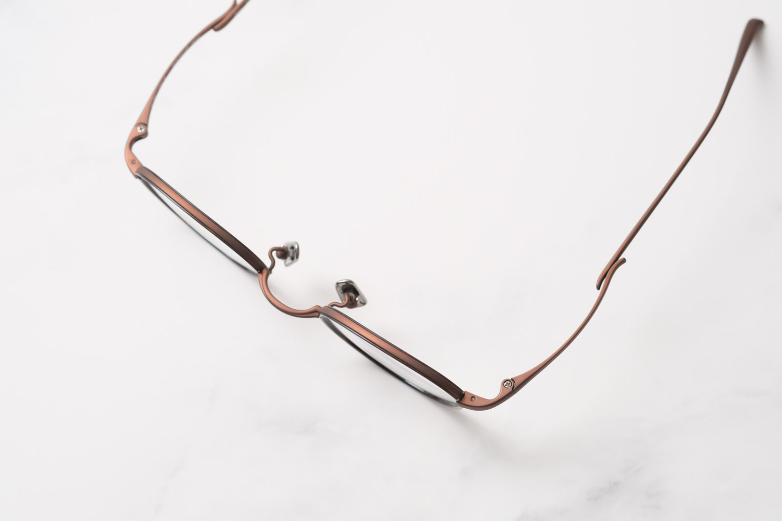 テンプルは、ピュアチタンと堅牢性とベータチタンのしなやかさを両立させたオリジナル構造。長時間の装用でも疲れない心地よいフィット感です。