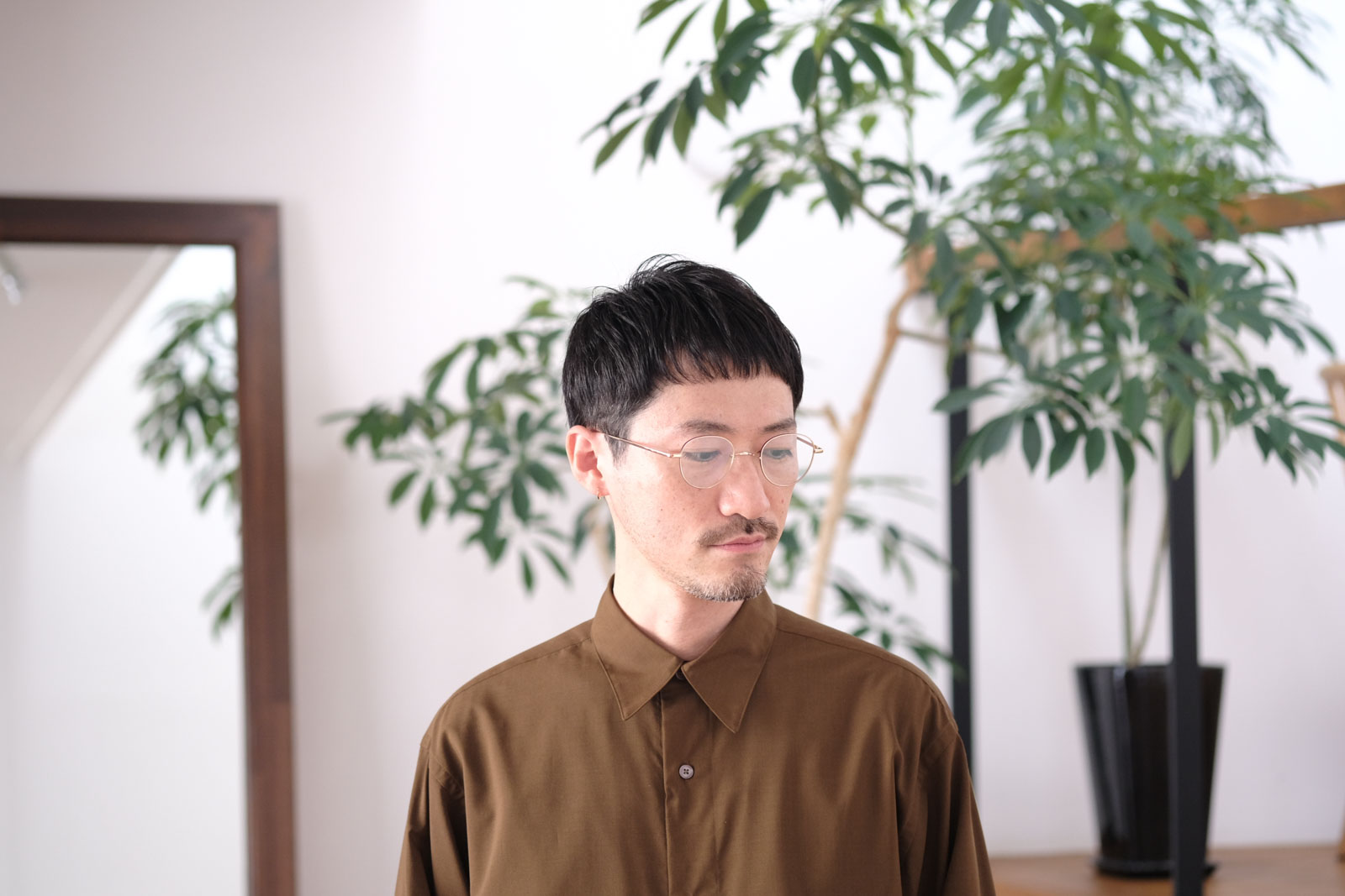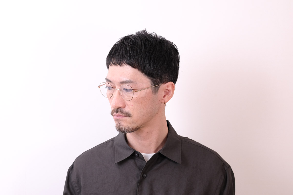 一山(イチヤマ)と呼ばれるクラシカルなブリッジが特徴のシンプルなメタルフレーム。やや大きめのボストンシェイプは、男性にもピッタリと馴染むサイズ感。オンオフ問わず幅広いシーンで活躍しそう。